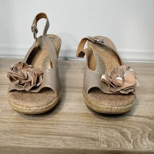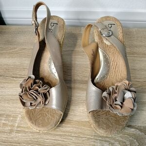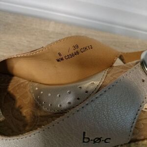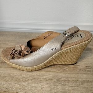 b.o.c. Born Women's Silver Metallic Leather Tan Wedge Peep Toe Sandals Sz 8