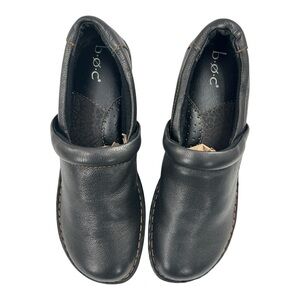 b.o.c. Dark Genuine Black Leather Casual Clogs Size 10 Like New Great For Work