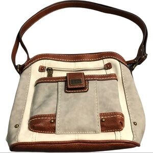 b.o.c. Gray, Cream, & Brown Crossbody / Shoulder Purse, Multiple Pockets