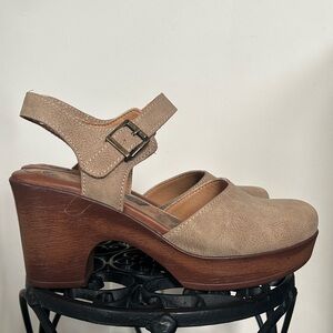b.o.c Natasha Natural Tone Nubuck Wood Grain Bohemian Size 7M Mary Jane Clogs!