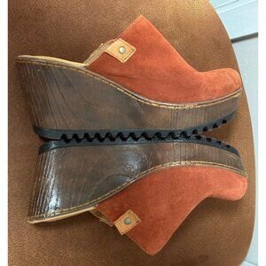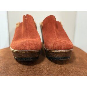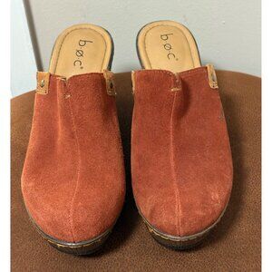 b.o.c SUEDE PLATFORMS WEDGE CLOGS MULES SLIP ON WOMENS 6M BURNT ORANGE ! READ!!!
