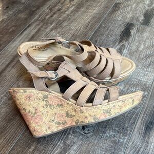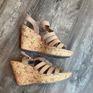 b.o.c. Tan Strappy Sandals with flower heel Women’s Size 9