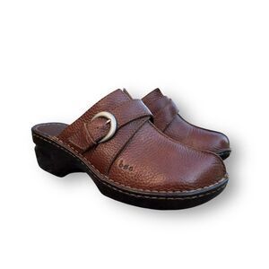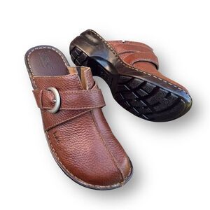 b.o.c. Women's Brown Leather Slip-On Mules Clogs Size 9 Chunky boho