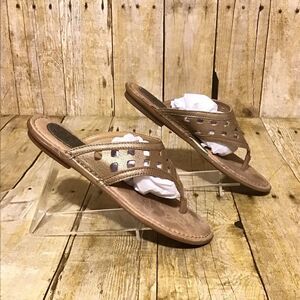 When it comes to style, comfort and luxury, b.o.c. brings you the best of all worlds with these Gold Leather Flat Sandals 6. Made from high-quality leather, these sandals come with a cushion insole that guarantees a comfortable fit for hours on end. These stunning gold lattice slip on flip flops take your fashion game up a notch, making you stand out from the crowd. Rest assured, these pre-loved sandals are in very good condition and promise to be a great addition to your shoe collection.
