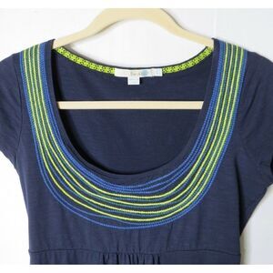 Boden Navy Empire Waist Embroidered Trim Scoop Neck Cotton Stretch Dress US 2 R UK 6 R