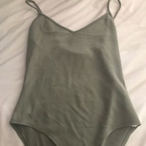 This green bodysuit is so cute & easy to style. It clips at the bottom and is a great thicker material.