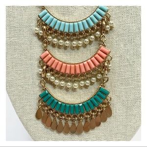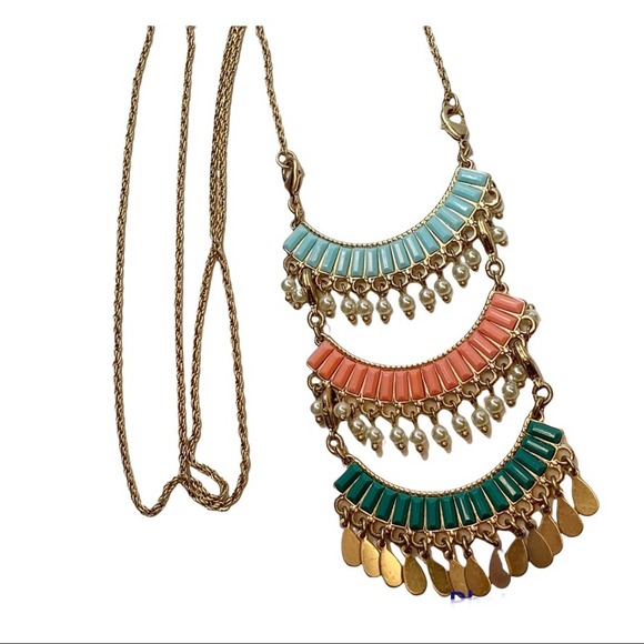 boho Gold tone long tiered colorful beaded necklace fun spring summer