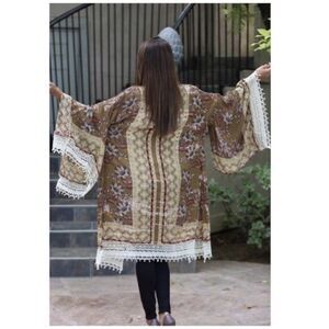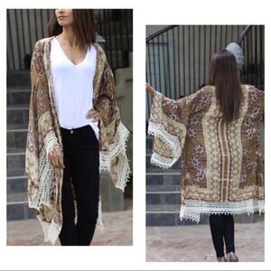 boho Kimono w Crochet Lace Detail & wide sleeves