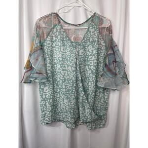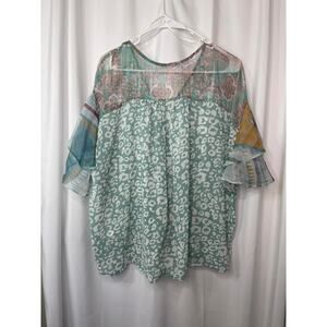 boho bohemian shirt blouse top women's 1x plus size green white floral