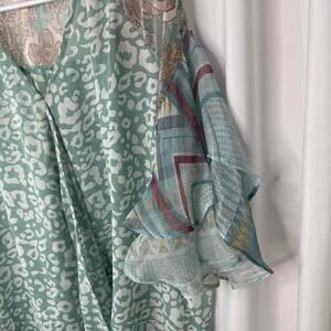 Women’s bouse shirt top size 1x extra large in a sage green with detail on sleeve. Please see listing for a picture of the material and care tags.