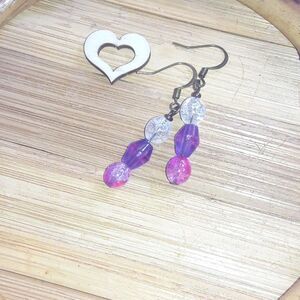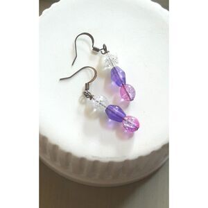 boho earrings 357#mfs Purple pink pastel earrings crackle glass bead linear cute