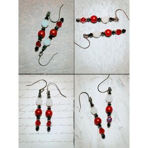 boho earrings 439#mfs Red white victorian hatpin earrings dangle vintage goth ro-