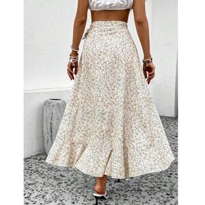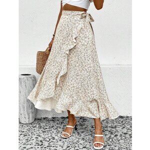 boho floral print ruffle wrap skirts maxi green