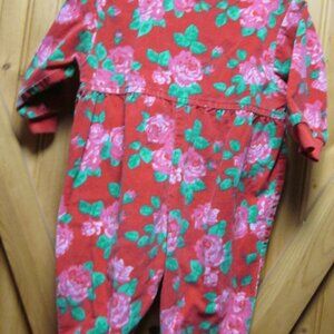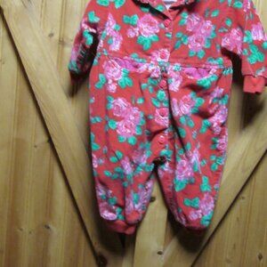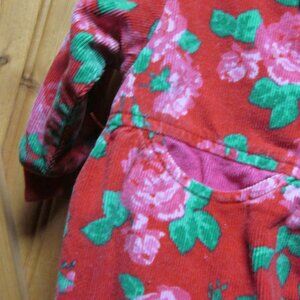 boho vtg infant girl 6-9 mos corduroy jumpsuit red floral