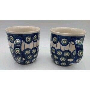 boleslawiec polish pottery Mugs Peacock Lines Dots Set Of 2