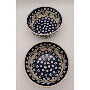 boleslawiec polish pottery bowls Scalloped Green Floral Chain Set Of 2 M Dumas