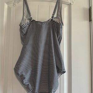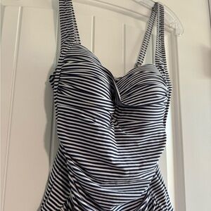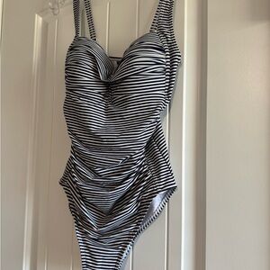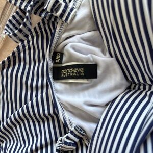 bond-eye White and Blue One Piece Swimsuit with Sophisticated Ruching