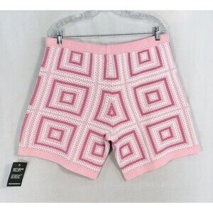 boohoo MAN Relaxed Crochet Knit Short Shorts in Pink Men's Size XL Square