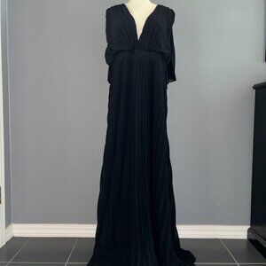 boohoo OCCASION NWT Black Knife Pleat Maxi Dress w/ Capelette 16Tall Extra Long