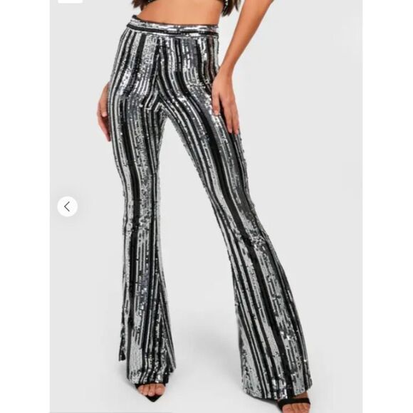 boohoo Plus Stripe Sequin Flare Trousers NWT