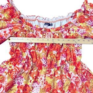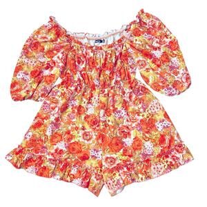 boohoo Romper Womens Size 10 Orange Yellow Ruffled Romantic Ruched Floral Whimsy