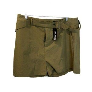 boohoo Women's Khaki Plus Woven Self Fabric Belted Tailored Short