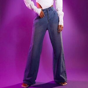 Boohoo High Rise Wide Leg Jeans Blue 10