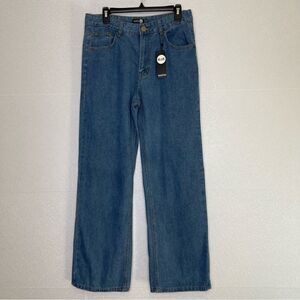 •Features: Wide leg high rise jeans. Fabric does not have any stretch.