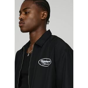 boohooMAN Oversized Zip Through Black Soft Twill Homme Graphic Shirt XL NEW