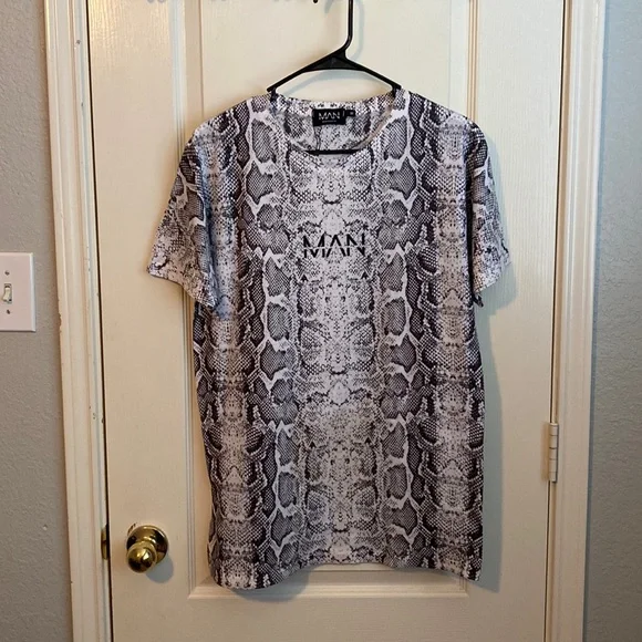 100% cotton medium sized boohooMAN short sleeve tee in python pattern graphics