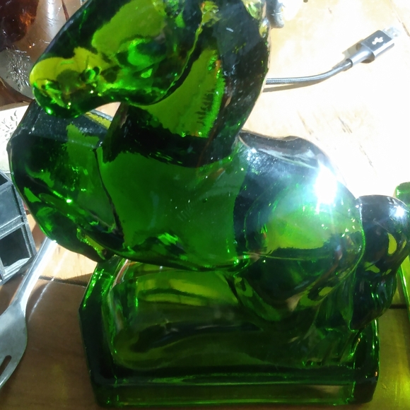 solid glass horse bookends in champaign and forest green tones. each weigh 2.4lbs.price is for 1 pair only.