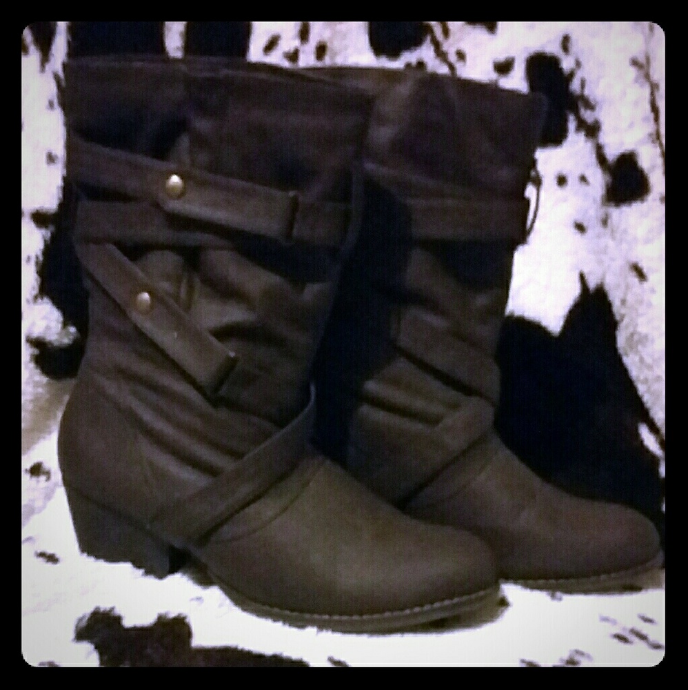 Brown wrap aroend strap.very cute with jeans,leggings&surprisingly will with regular fit/folded jeans,these have only ever been worn but twice.
