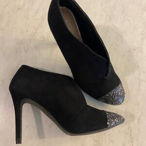Jessica Simpson, black suede with glitter toes, 4" heel, some wear but in good shape