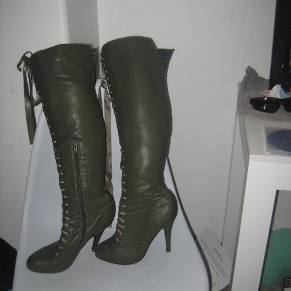 Sexy green lace up knee high boots