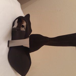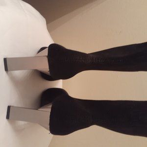 Black cloth boots with silver heels brand new never worn size 7 with no damage.