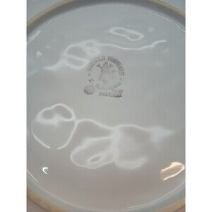 Set of two nine and a half inch salad plates. No chips cracks grazing or discolorations. One plate has a small glaze defect on the back rim see photo with pen for scale.