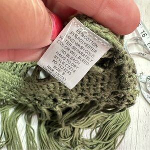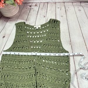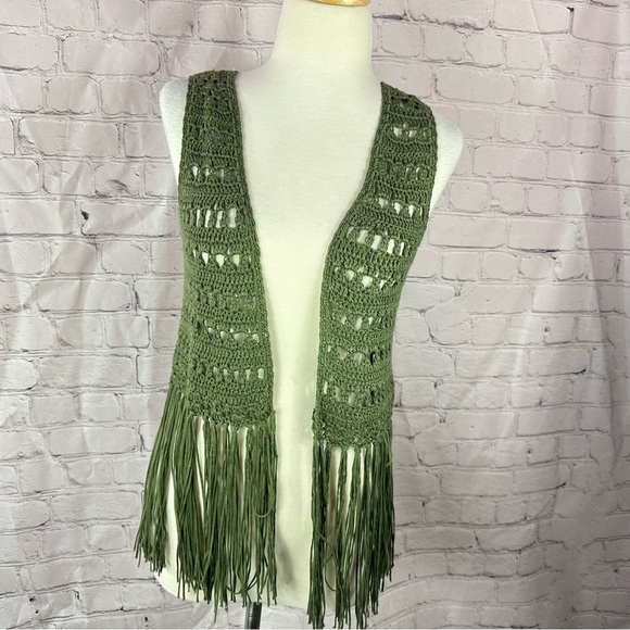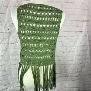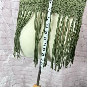 boutique Umgee Olive green Crochet Vest with Fringe sz small boho western