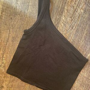 [boutique] asymmetrical one shoulder black ribbed crop top #2