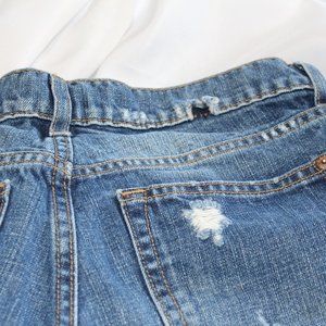 gap size 4/27, distressed, has 2 paint stains on leg, hardly visible when shorts are worn