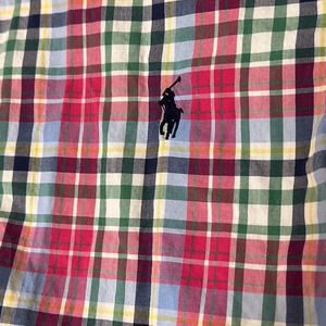 boys pink green blue white yellow plaid Ralph Lauren button down shirt size large 14/16