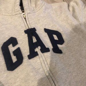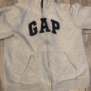 gap boys zip up sweatshirt. Heavier so great for the cold weather!. Has two pockets and no drawstrings on the hood. my brothers last name written on the inside. Tiny pull on corner of pockets, see pictures. xxl