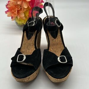 bp. Black Suede Cork Wedge Sandal Size 8.5 BSN6826F