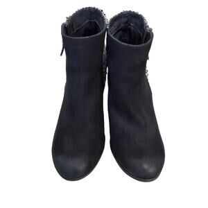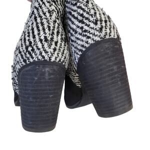 bp | Leather and Herringbone Knit Side Zip Heeled Ankle Trolley Booties