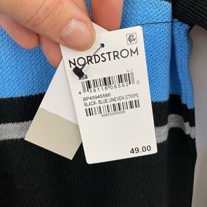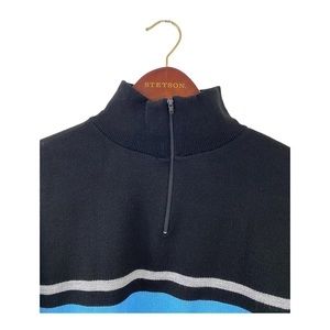 Sweater Medium Womens black & blue uneven stripe Half Zip Mock Neck NWT