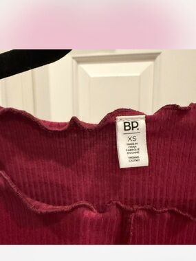 bp Ribbed Lettuce-Edge Short Sleeve Top - Raspberry