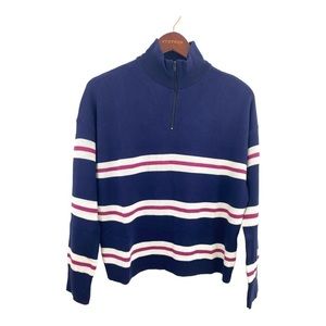bp. Sweater Medium Womens Navy Half Zip Mock Neck Navy Pink White Stripe NWT