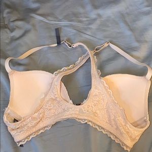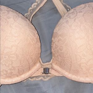 light pink, lacey pattern, slight push up, front clasp