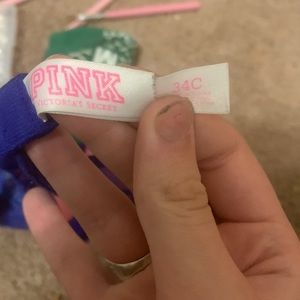 blue lace bra with pink inside, straps
