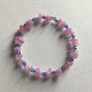 Pink and blue beaded bracelet