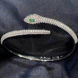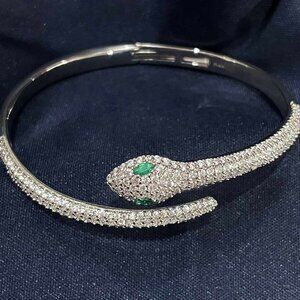 A snake-shaped bangle adorned with shimmering stones, exuding brilliance and elegance.